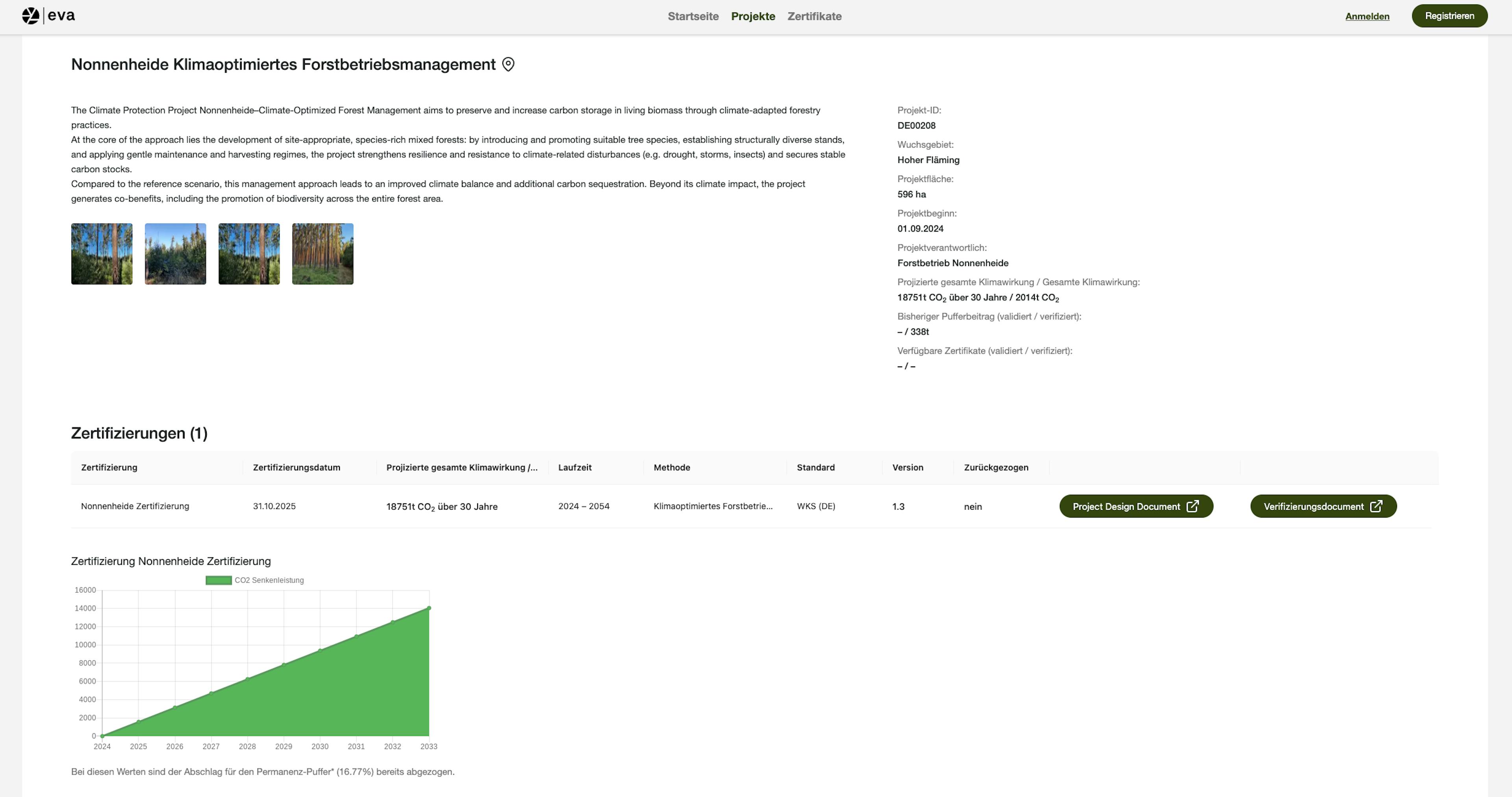 The Nonnenheide Climate-Optimized Forest Management project covers 596 hectares in Brandenburg and focuses on improving forest management (IFM) to boost carbon storage. Traditionally a Scots pine forest, it will be transformed into a diverse, climate-resilient mixed forest. By adapting management practices, the project aims to increase carbon sequestration, enhance resilience to droughts and pests, and balance timber production with long-term climate protection.